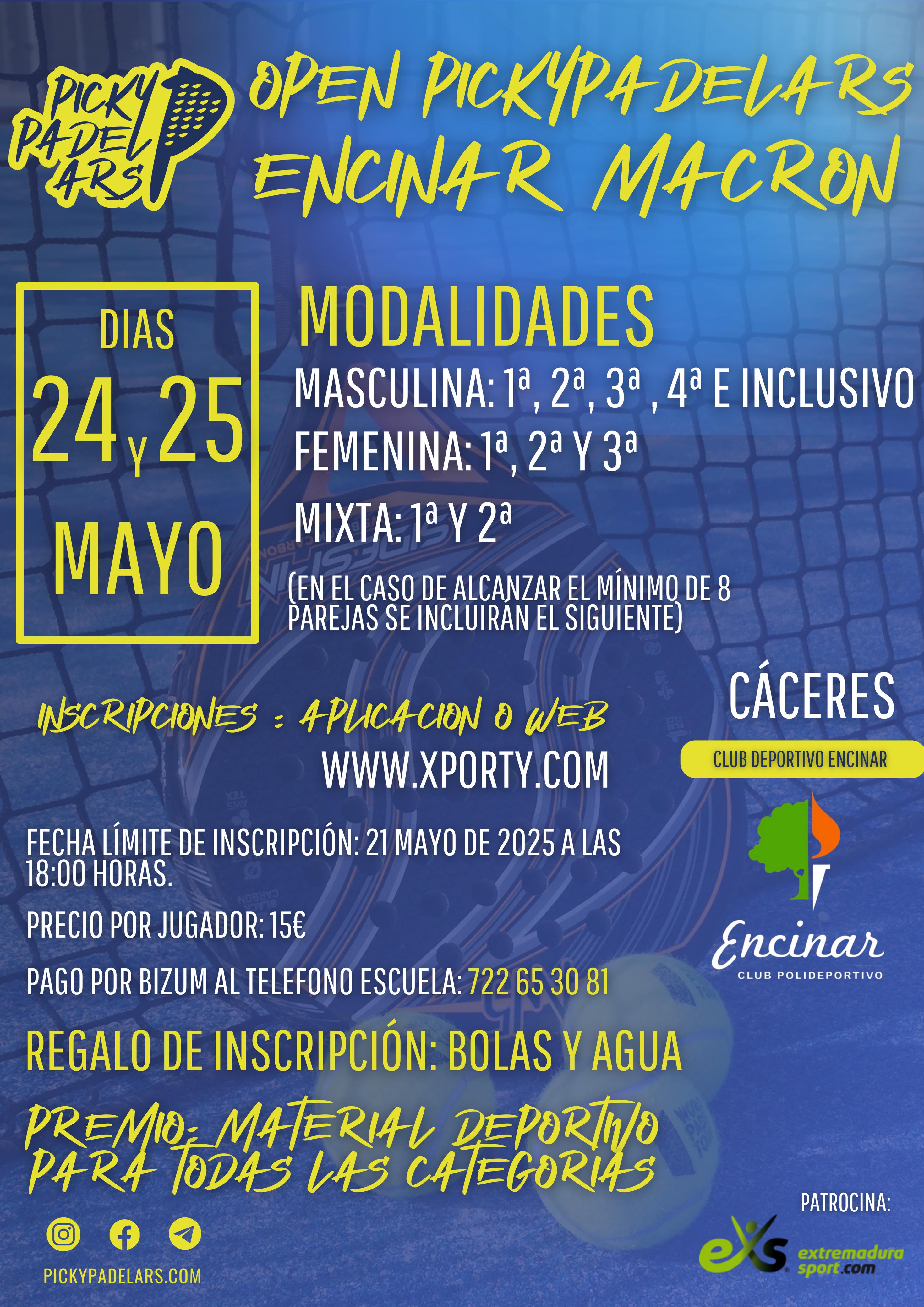 OS INFORMAMOS QUE VAMOS A ORGANIZAR EL PRÓXIMO 24 Y 25 DE MAYO EN LAS INSTALACIONES DEL CLUB ENCINAR, LA SEGUNDA EDICIÓN DEL TORNEO MACRON PICKYPADELARS 2025.